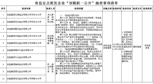 食盐定点批发企业“双随机、一公开”抽查事项清单
