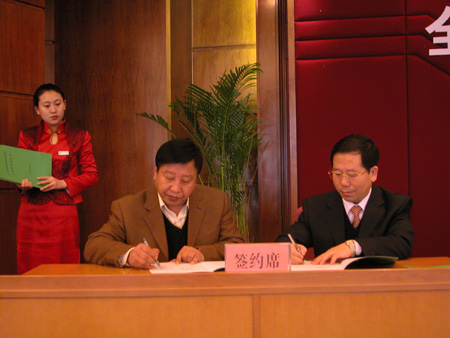 省粮食局李贺军副局长与各市、县粮食局长签定2007年全省粮食安全管理工作目标责任书