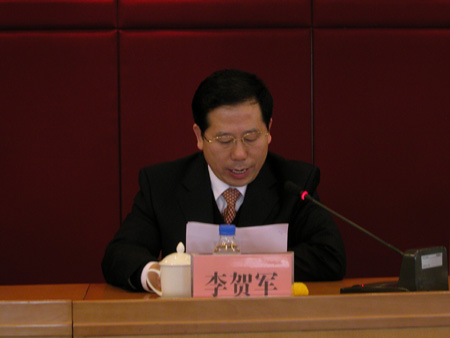 省粮食局李贺军副局长宣读《关于通报表彰全省粮食安全管理工作先进市县的决定》