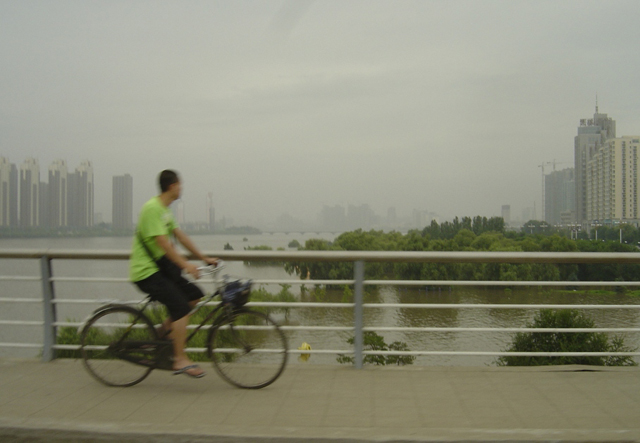松花江水位不断上涨,沿岸树木被江水淹没一半左右