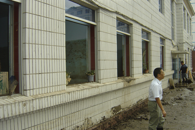 永吉县粮油质检站办公楼门窗被洪水冲毁,所有设备被洪水冲走