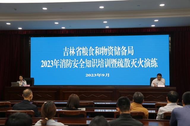 为贯彻“安全第一,预防为主,防消结合”消防工作方针,落实全省消防安全重大风险隐患专项排查整治2023行动部署要求,切实履行消防安全主体责任,加强消防安全管理工作,防范化解消防安全风险隐患,科学有效应对火灾事故,9月20日,由局办公室、安监处和机关服务中心共同组织开展省粮食和物资储备局2023年消防安全知识培训暨疏散灭火演练。