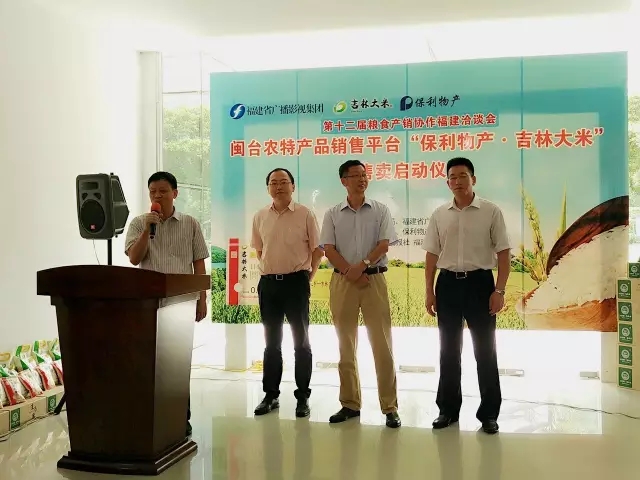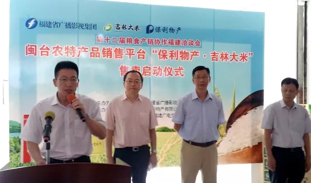 6月19日下午,福建省广播影视集团、福建广播电视报社及全资公司福建广电文化科技有限公司携手中国保利集团上海保利物产有限公司,在西二环南路128号的福建省闽台农特产品销售平台(O2O)门店举行“保利物产-吉林大米”售卖启动仪式暨品鉴会。 吉林省粮食局杨光副局长、福建省粮食局赖应辉副局长,福建省广播影视集团王展副董事长,中国保利集团上海保利物产有限公司杨光董事长、金景春副总经理,福建广播电视报社李闽山社长以及吉、闽两省粮食行业协会、企业代表出席仪式。