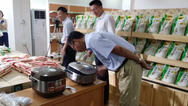 ▲福建省粮食局赖应辉副局长参观平台并对吉林大米进行考察