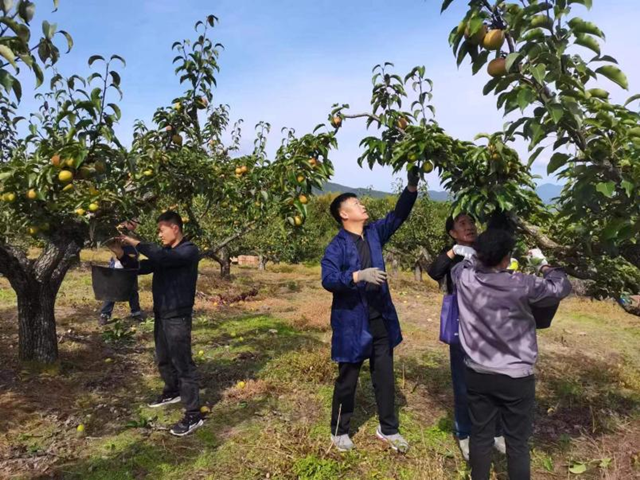省粮食和物资储备局包保的龙井市三合村素有“苹果梨之乡”的美称,优越的地理条件使三合村成为优越的苹果梨种植地。9月底正值苹果梨采摘旺季,三合村却面临梨农采摘苹果梨雇人难、采购商无法在中秋节前将苹果梨运输到销售地的困境。局新派驻三合村第一书记牢记局党组关于驻村工作各项要求,牢固树立“想群众所想、急群众所急、办群众所需”工作理念,沟通协调驻龙部队某连解放军战士、延边州盐业公司和龙井市盐业经销站党员干部共30余人,于9月27日组织开展了“解民忧 暖民心”帮扶活动,为梨农采摘苹果梨、装车码箱,当天共采摘1300余箱、装车2300余箱,及时解决了苹果梨“采不下、运不出”导致梨农收入受损的窘境。