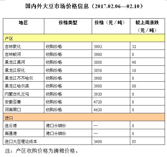 国内外大豆市场价格信息(2017.02.06-02.10)