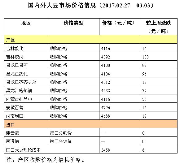 国内外大豆市场价格信息(2017.02.27-03.03)