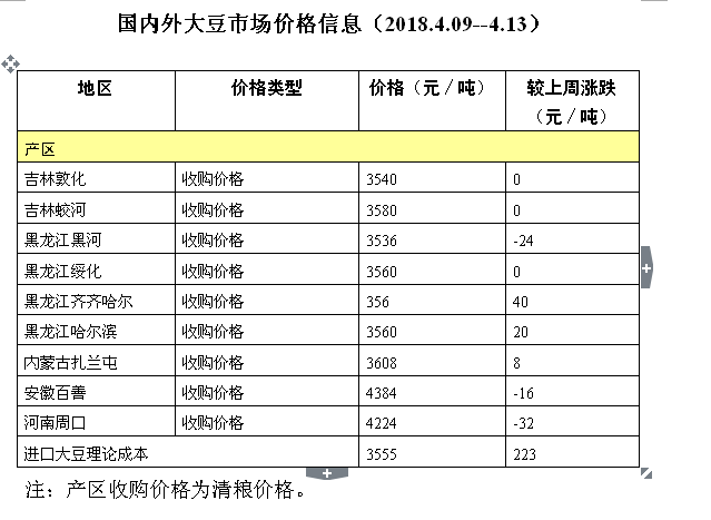 国内外大豆市场价格信息(2018.4.09-4.13)