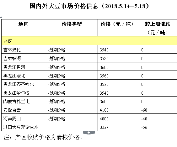 国内外大豆市场价格信息(2018.5.14-5.18)