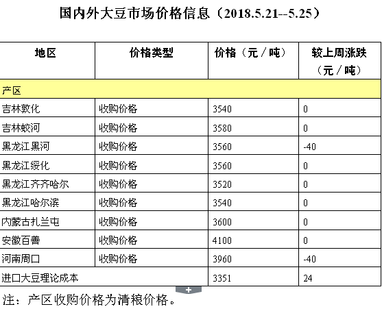 国内外大豆市场价格信息(2018.5.21-5.25)