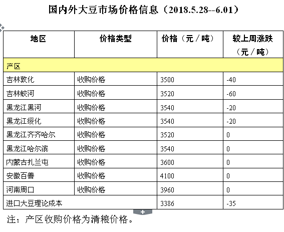 国内外大豆市场价格信息(2018.5.28-6.01)