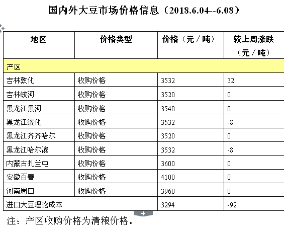 国内外大豆市场价格信息(2018.6.04-6.08)