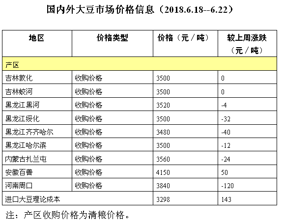 国内外大豆市场价格信息(2018.6.18-6.22)