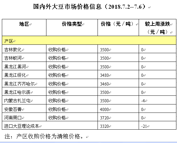 国内外大豆市场价格信息(2018.7.2-7.6)