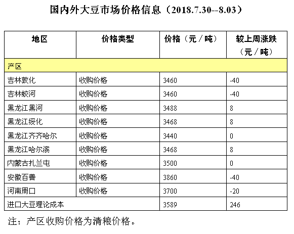 国内外大豆市场价格信息(2018.7.30-8.03)
