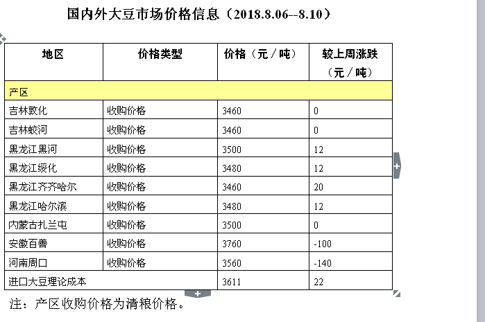 国内外大豆市场价格信息(2018.8.06-8.10)