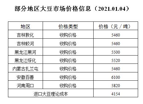 部分地区大豆市场价格信息(2021.01.04)