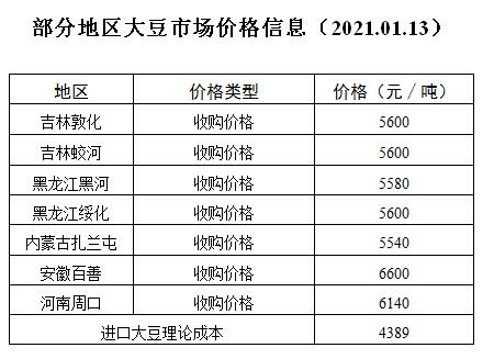 部分地区大豆市场价格信息(2021.01.13)