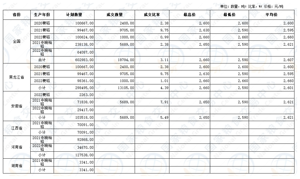 2024年9月3日最低收购价稻谷竞价销售交易结果