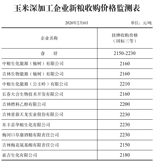 截至2月6日,入统企业累计收购新粮496.3亿斤,同比增加28.2亿斤。分品种:玉米405.2亿斤,同比增加11.1亿斤;稻谷87.3亿斤,同比增加16.6亿斤;大豆3.6亿斤,同比增加1.0亿斤。