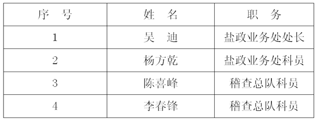 吉林省盐务管理局执法人员名单